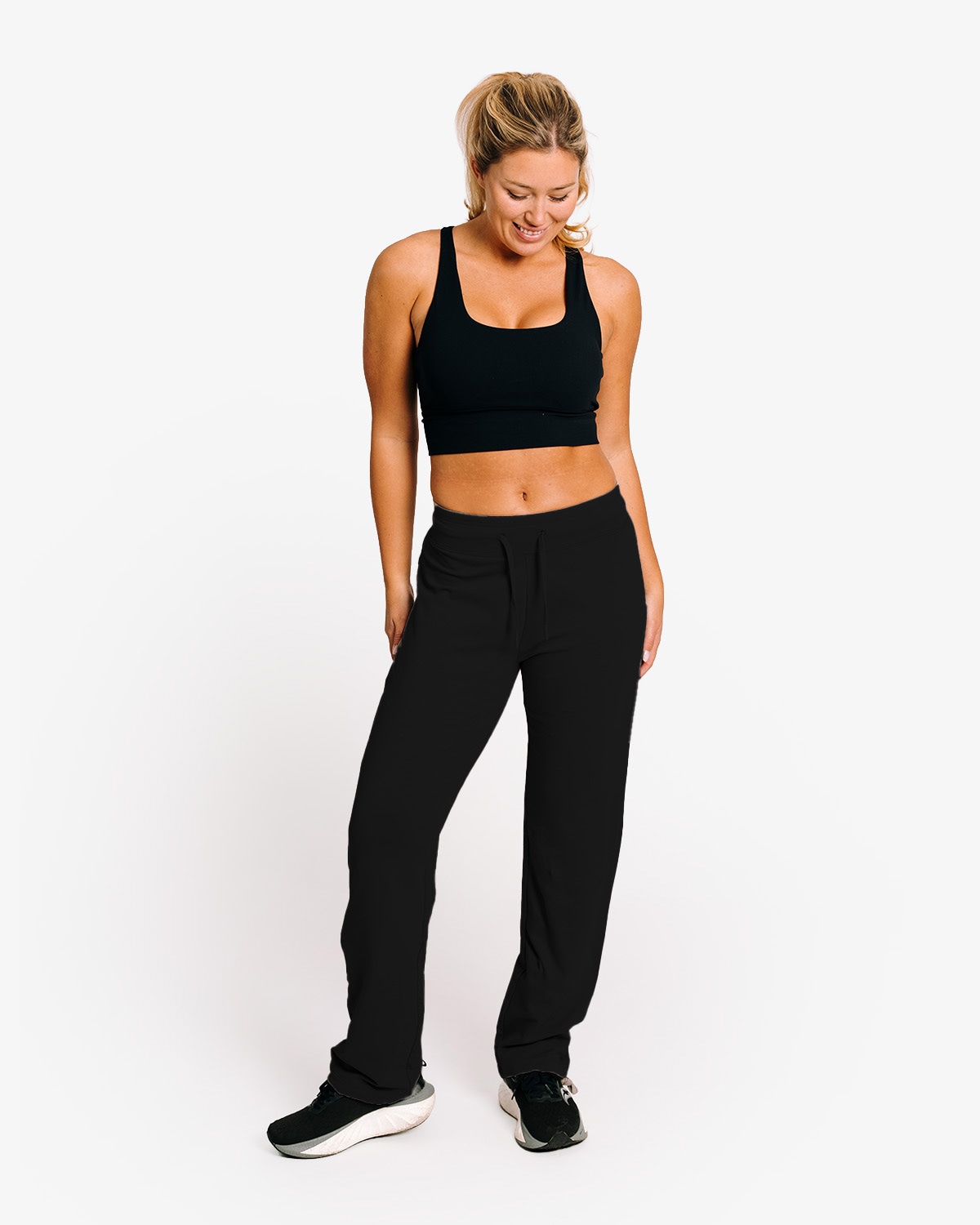 Lette og luftige jerseybukser med rett passform og lav midje. Laget av en myk bomullsblanding med 92% bomull og 8% elastan som gir en behagelig og fleksibel følelse. Buksene har et stilrent design uten lommer og justerbar snor nederst på bena, slik at du selv kan velge mellom en rett silhuett eller en smalere avslutning. Perfekte både til trening og hverdags for en avslappet, sporty look.