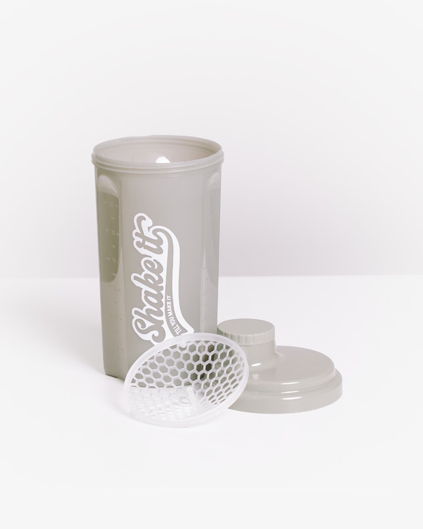 Den gjennomsiktige designen gjør det lett å se innholdet, og det avtakbare filteret sørger for jevn og klumpefri blanding. Shakeren er laget av slitesterk plast og har et tett skrulokk som forhindrer lekkasje – perfekt for treningsbagen.