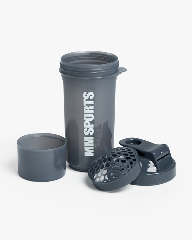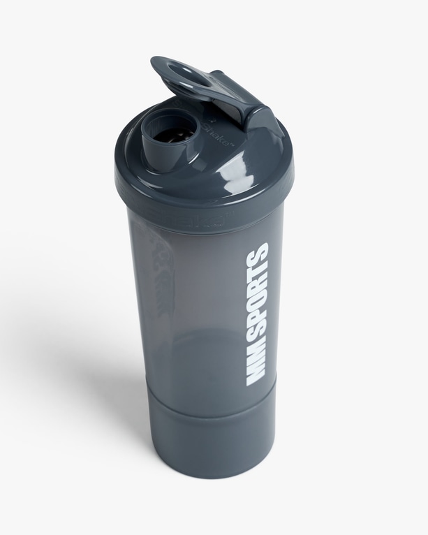 Takket være den smarte ekstrabeholderen som skrus på shakeren, kan du ha med deg både PWO og proteinpulver eller andre tilskudd uten å måtte ta med deg poser med pulver eller ekstra oppbevaringsesker til kapsler og tabletter. Fyll bare ekstrabeholderen med det du trenger å ha med deg, skru beholderen fast på shakeren og gå på trening.